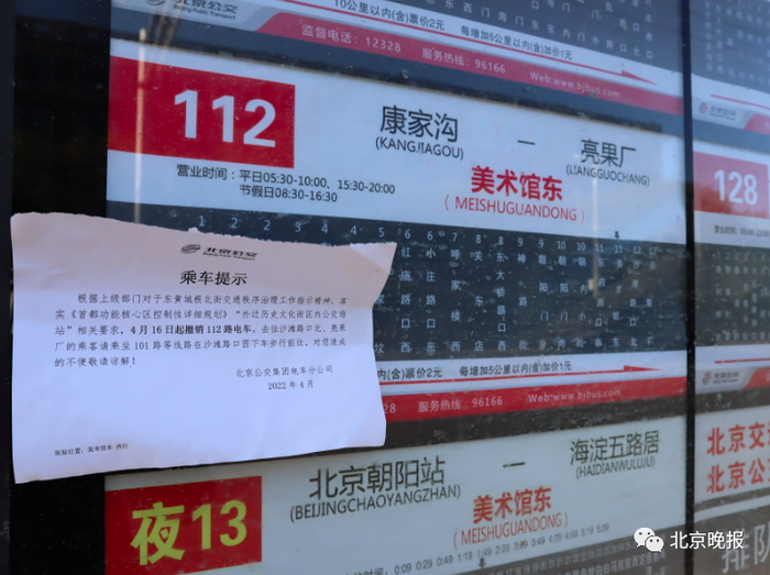 “按照东城区关于东黄城根北街交通治理工作要求,因东黄城根北街路侧无法再承担112路车辆驻发功能,自2022年4月16日起,撤销112路。”4月8日,北京公交集团发布这一消息后,引发了不少市民的感慨。“从小学到退休,我的私人订制,再见啦!”“伴随我从小成长的112路,难说再见!”