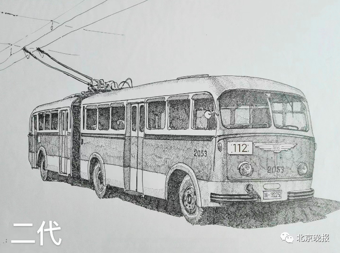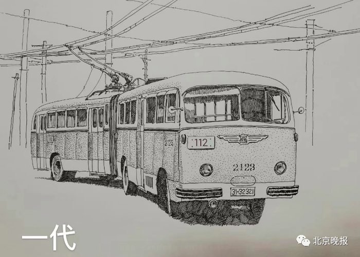 “线路几经调整外,112路的车型也在改变升级。”王忠良不光是这条线路的“老乘客”,还是一位热衷于画老式公交车的画家。他摊开手中的画板,一幅幅用钢笔描绘的公交车图展现在眼前。“这是1960年刚开通时的112路,车型为京一牌BD560型铰接式无轨电车。一直到1967年,有了第二代车型——改造型BD560无轨电车,它是由BD540单机电车改造而成,一代、二代两种车型同步使用。直到1979年,新型BD562型电车投入运营……”关于112路的车型变迁,王忠良如数家珍。