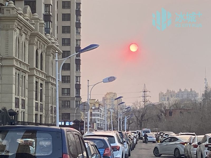 【原创】夕阳醉了 | 冰城现罕见红日 气象专家:与浮尘天气有关