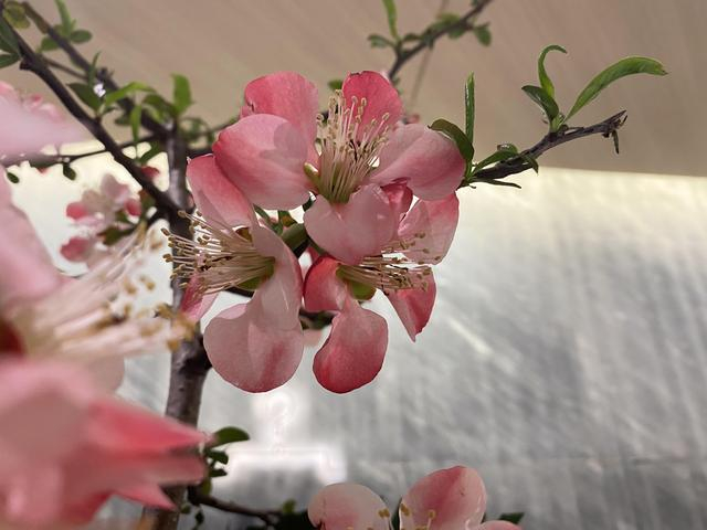一簇簇的海棠花叠满枝头,有的粉里透白,有的绯红浅红,浓淡有致;迎风摇曳,楚楚动人。最关键,这种花花期长,相对好养;很适合在家中长期栽培观赏。有兴致的花友可以尝试一下。