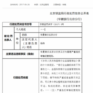 文书显示,华夏银行北京分行在2013年至2015年期间,发生多名员工违规向客户推介、销售非本行代销的私募基金及其他第三方理财投资产品,涉及金额较大、支行(经营单位)较多,社会影响恶劣。北京银监局认为华夏银行北京分行在员工日常行为管理内部控制方面存在较为严重的漏洞,责令华夏银行北京分行改正,并给予50万元罚款的行政处罚。