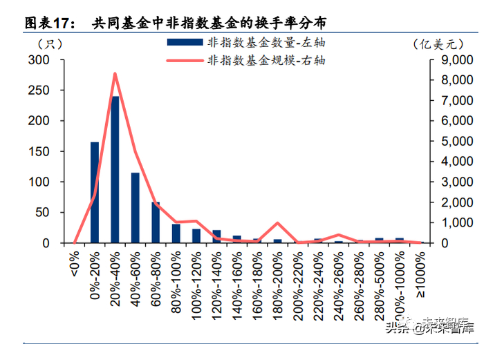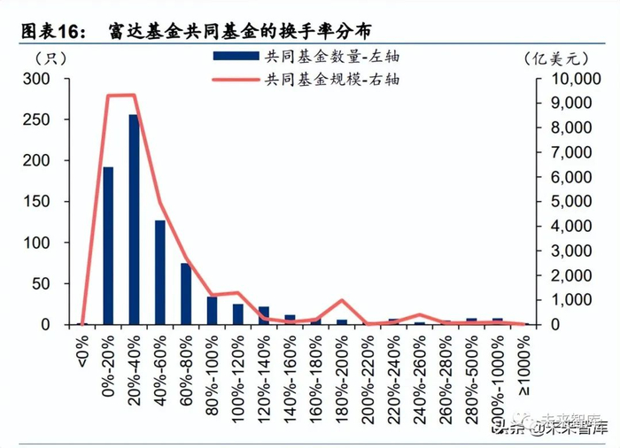 半数以上基金年化换手率集中于 40%以下区间。2021 年,公司共同基金中 56%的换手率 在 40%以下区间,73%的换手率均集中在 60%以下区间;共同基金中非指数类基金 56%的 换手率在 40%以下区间,72%的换手率均集中在 60%以下区间,整体换手率处于较低水平。