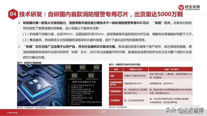 青鸟消防位列消防报警品牌榜首。2021年公司获得慧聪网十大报警品牌榜首及年度十大智慧消防领军品牌等多个荣誉,获得了行 业一致认可,品牌是产品性能、质量、服务水平强有力的背书,随着公众消防意识的增强,对产品的性能、设计和服务越发重视, 良好的品牌力将成为公司的核心竞争力的体现。