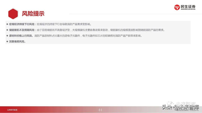 青鸟消防和国安达灭火技术均能实现PACK级灭火。根据《电化学储能电站安全规程》要求储能电站灭火要以电池模组为单位。青 鸟消防和国安达目前均能实现电池模组级别灭火。(1)青鸟消防:采用七氟丙烷+细水雾系统相结合,可针对PACK级、舱级、簇级,能有效扑灭锂电池火灾并抑制复燃。(2)国安达:采用比全氟己酮、七氟丙烷灭火效能更高、环保性更强、性价比更高的多组份混合灭火剂,持续抑制,惰化抑爆。(报告来源:未来智库)