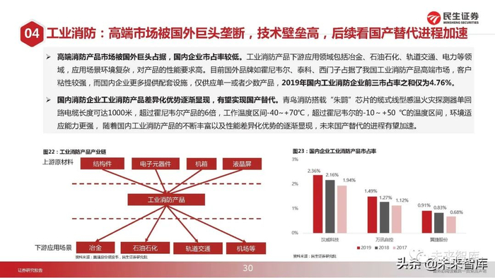 工业消防:高端市场被国外巨头垄断,技术壁垒高,后续看国产替代进程加速