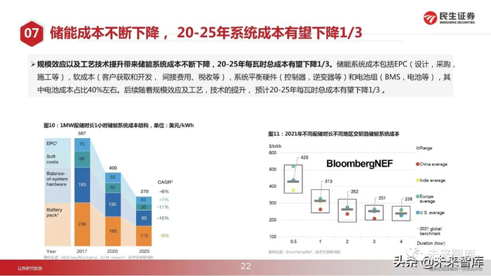 储能成本不断下降, 20-25年系统成本有望下降1/3