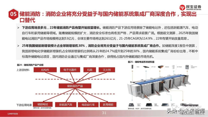储能消防:消防企业将充分受益于与国内储能系统集成厂商深度合作,实现出 口替代