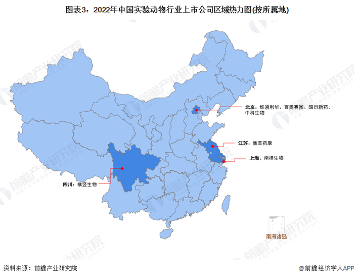 从我国实验动物行业代表性企业的发展布局来看,我国实验动物企业的重点区域布局主要集中在华东、华北和华南等地区。