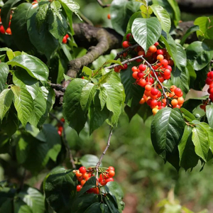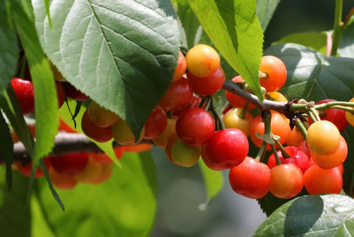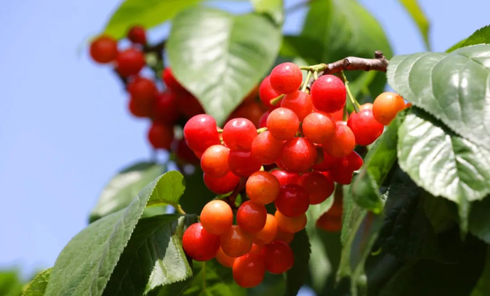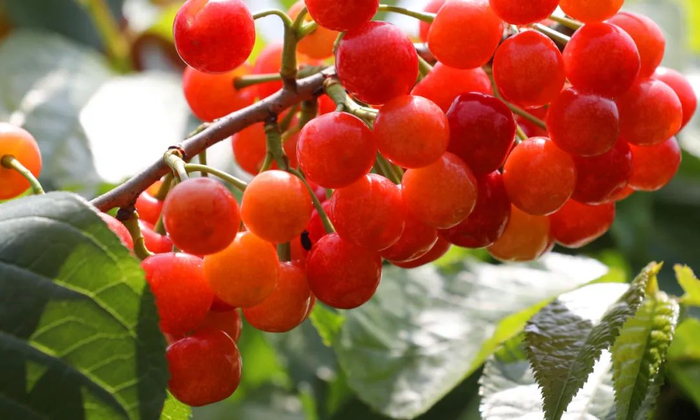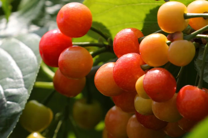 有“红灯笼”和“黑珍珠”两个品种的樱桃