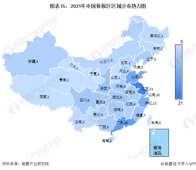 1、区域竞争:江苏省保税区数量最多