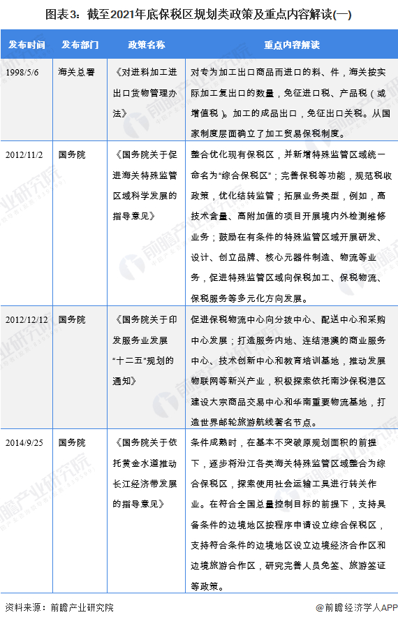 1998年以来,国务院和海关总署等多部门都陆续印发了支持、管理保税区的相关政策,内容涉及国际贸易、生产加工、物流仓储等内容: