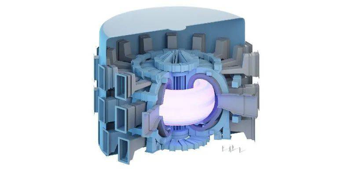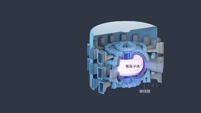 用液氦冷却的超导磁线圈将等离子体盛装在环形容器中。