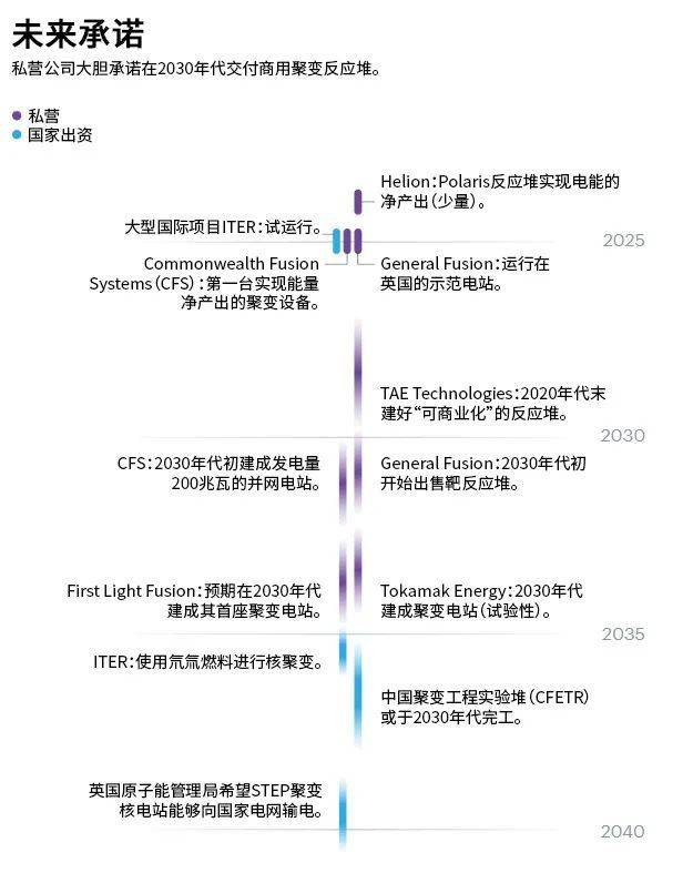 尽管人们希望聚变能在本世纪下半叶成为能源经济的关键组成部分,但各国和国际上的大型项目不会那么快成功,缓解气候变化所需的能源脱碳还有待时日。不过,私营企业希望能更快造出可用、成本适中的设备(见“聚变热潮”)。