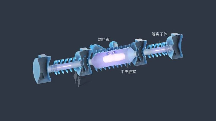 多束等离子体被发射到一个中央腔室,并在螺线管(线圈缠绕的电磁体)内快速旋转。