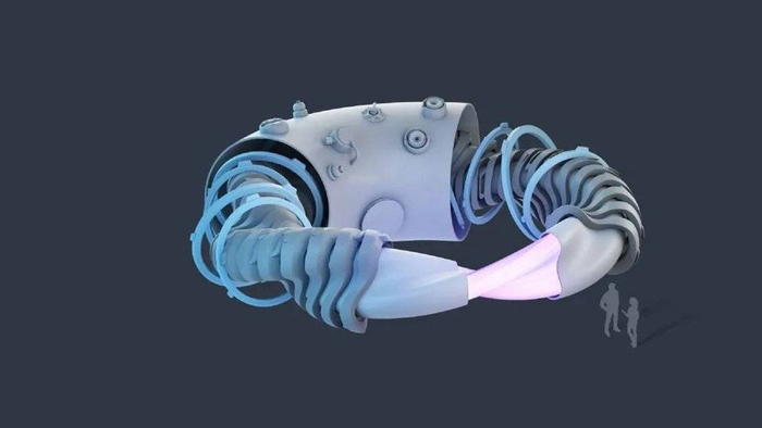 但托卡马克并非唯一的选择。在1950年代,即聚变技术的早期,美国天体物理学家Lyman Spitzer就证明了磁场可以被设计成扭曲的环状,很像数字8,这样就能形成一个可以容纳等离子体的“磁瓶”。这种设计被称为仿星器(stellarator)。但是,求解描述这种复杂几何结构的等离子体方程的计算量过于庞大。所以在托卡马克演示成功后,这个概念就基本上被放弃了。