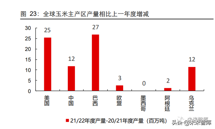 21/22 年度 USDA 预测乌克兰玉米产量为 4200 万吨,同比增加 38%。玉米高价鼓励农 民耕种。乌克兰 21/22 年度玉米录得丰收,产量创 10 年以来最高记录,达到 4200 万 吨。根据乌克兰农业部,玉米丰产原因在于玉米价格高企鼓励农户播种玉米,玉米播种 面积创下历史最高水平。