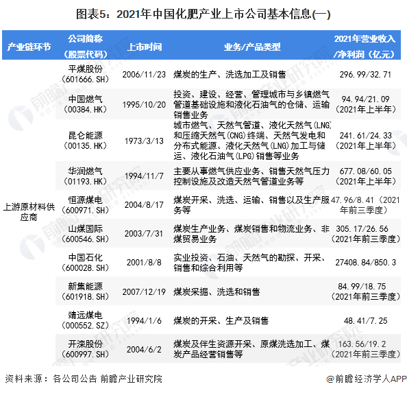1、化肥产业上市公司汇总