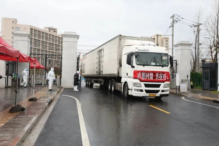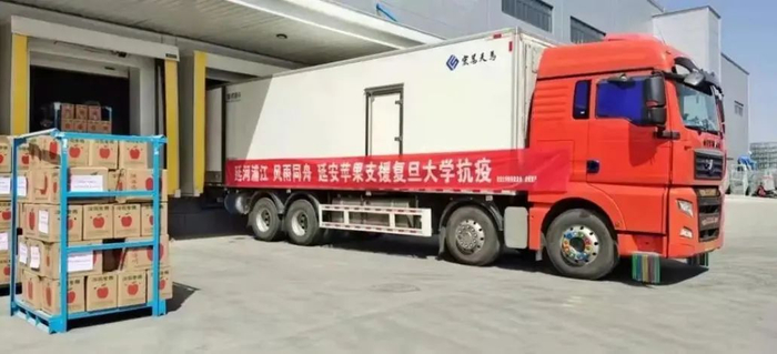 4月7日,宁夏大学“抗疫援助物资”专车缓缓驶入了上海交大校园,为师生带来了25吨蔬菜水果、牛奶和肉食。