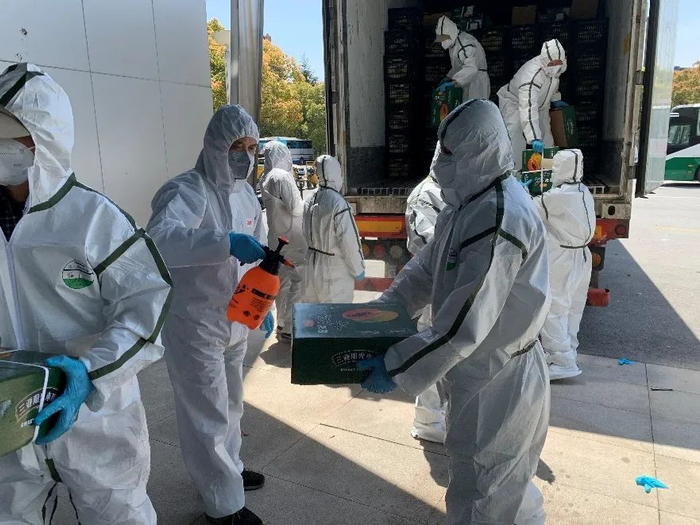 4月4日,海南三亚支援上海交通大学的20余吨水果和蔬菜抵达校园,在疫情特殊时期给师生带来了祖国南端的问候。
