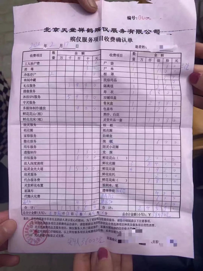 如果殡葬服务的工作人员故意隐瞒收费项目或者令其强制消费,那问题自然出在这个“乱收费”的太平间身上,可如果费用已被提前说明,且项目为家属自行选择的话,那对于“天价”的指责显然对殡葬方不太公平——因为这是一次有明确协议的服务交易。