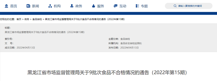 黑龙江省市场监督管理局特别提示消费者,在购买到或在市场上发现不合格食品,请拨打当地12315投诉举报电话进行投诉或举报。