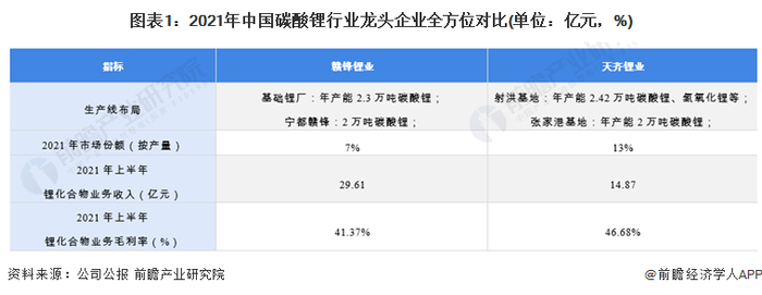 碳酸锂广泛用于锂电、玻璃、陶瓷、电子等行业。随着新能源汽车需求爆发,电池级碳酸锂出现了供不应求的局面。目前,碳酸锂行业的头部企业包括赣锋锂业和天齐锂业。通过对两家公司进行对比,可以较为直观的了解各企业的优劣势情况。