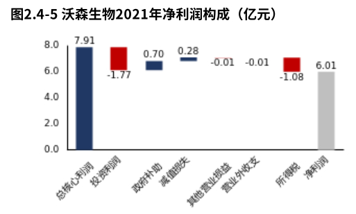 2022年3月18日晚,沃森生物公告2021年年报。报告期内,公司实现营业收入约34.6亿元,同比增长17.82%;归母净利润约4.28亿元,同比下滑57.36%。2021年报里还有哪些重要数据呢?沃森生物2021年营业总收入34.63亿元,经营业务出现下滑,其中销售收入增长、毛利润快速增长、核心利润下滑。产品盈利的增长,是销售规模扩大和产品竞争力增加共同作用的结果,产品盈利增长质量较高。虽然产品盈利增长,但费用支出增长更多,导致经营活动的盈利下滑。产品主要包括"13价肺炎球菌多糖结合疫苗"等。沃森生物2021年营业利润7.10亿元,经营活动产生的核心利润占主导地位。沃森生物2021年毛利率(88.61%)水平高,较2020年产品竞争力基本稳定。沃森生物核心利润率(22.8%)水平高,较2020年经营活动盈利能力降低。核心利润率降低主要源于研发费用率的提高。2021年核心利润7.91亿元,核心利润变现率81.39%,变现能力不强,其中对下游客户的议价能力基本稳定、对供应商议价能力变强。与2020年核心利润变现率相比,变现能力增强。经营活动产生的造血能力足以补偿折旧摊销以及支持利息费用现金股利的支付,且有一定富余可以支持扩大再生产等投资活动。2021年12月31日资产总额136.74亿元。较2020年12月31日,存货增长3.90亿元,存货规模快速扩张。其规模的增长主要是源于原材料增长贡献度的扩张。集团账上货币资金34.43亿元。2021年经营活动和投资活动现金缺口共2.72亿元。与2020年相比,资金缺口缩小。