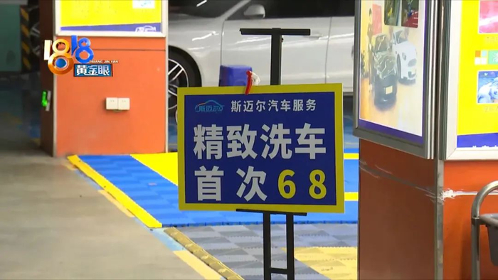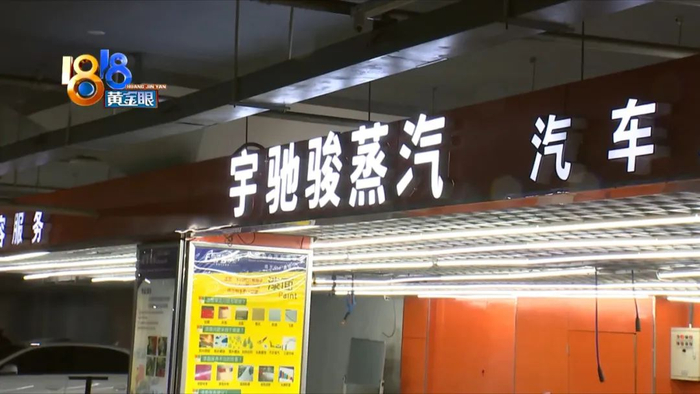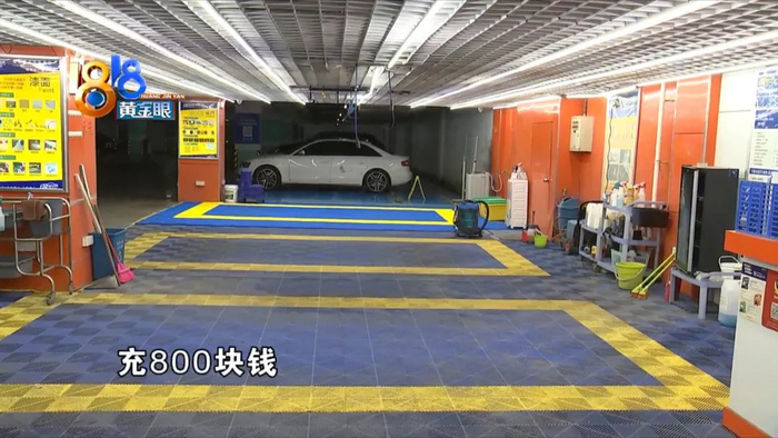 这家洗车行在余杭西田城地下车库二楼,招牌上的字是宇驰骏蒸汽汽车美容服务。钱先生说当时来购物,车有些脏,就开过来清洗,店长服务不错,洗完后推荐他办一张卡。