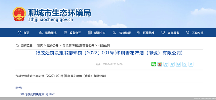 因“超标排放”的环保问题遭聊城市生态环境局罚款,华润啤酒成为业内外人士热议焦点。