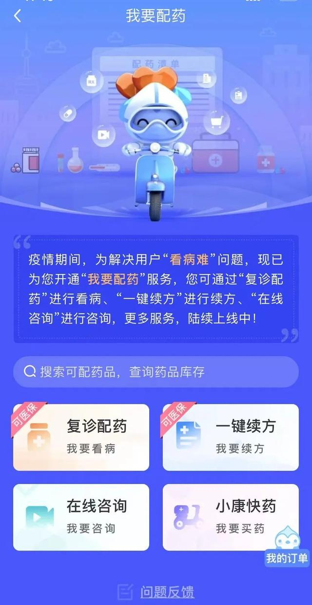 针对市民反映的配药难、配送时间长等问题,“健康云”平台于4月15日上线试运行“我要配药”服务功能,通过“在线咨询”“复诊配药”“一键续方”开展咨询、看病、续方等服务,为市民提供配药诊疗服务。
