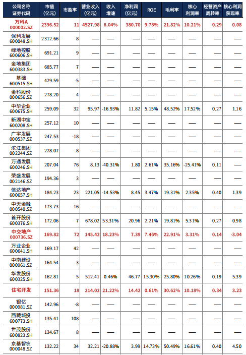 中交地产2022年04?15?市值169.82亿元,远低于万科A市值。