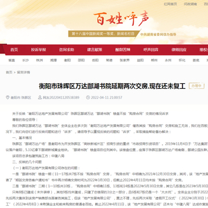 4月11日,网友分别以“酃湖万达无故停工停产”“酃湖书院延期两次交房,现在未复工”为题,在红网“百姓呼声”问政栏目投诉。