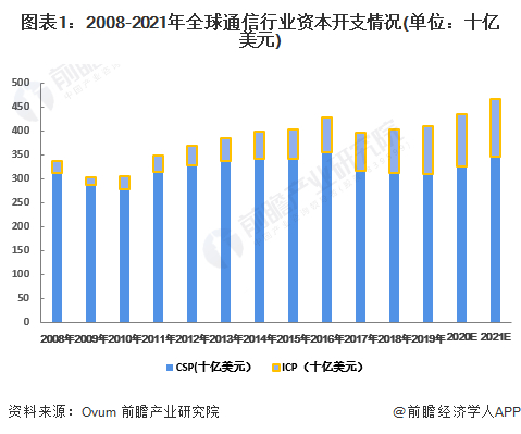 从电信服务提供商(CSP)的资本性开支情况来看,2015年之后,全球4G建设进入尾声,传统电信运营商整体收入增长率徘徊在2%左右,疲软的收入限制了资本支出预算,所以CSP的资本支出直到2019年都呈现负增长,但仍维持在3000亿美元以上的水平。2019年后,全球进入5G时代,资本支出迎来了新一轮的上涨,2021年,全球通信行业资本开支约达到3470亿美元。