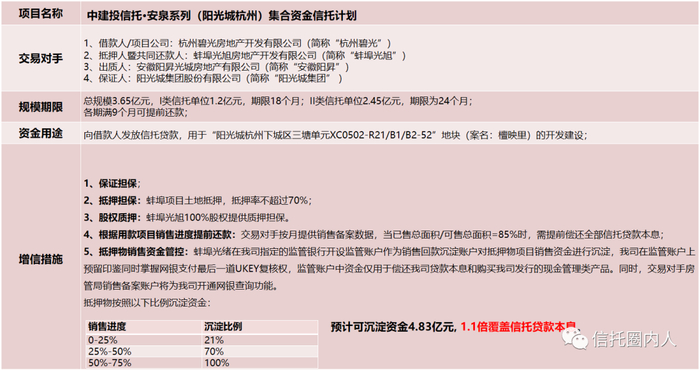 针对信托延长期将于6月19日届满的阳光城项目,中建投给出的方案是:底层贷款层面,给予阳光城延期;信托计划层面,成立纾困基金,按照 7:3的比例分层,由中建投提供劣后资金。