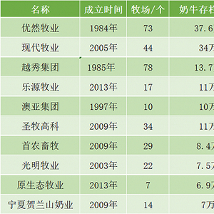 背靠大树好乘凉,在两大乳企的引领下,优然牧业和现代牧业也越做越大,两家存栏合计近72万头,年产奶量为424.5万吨,占据了TOP10半壁江山,且有进一步扩大之势。
