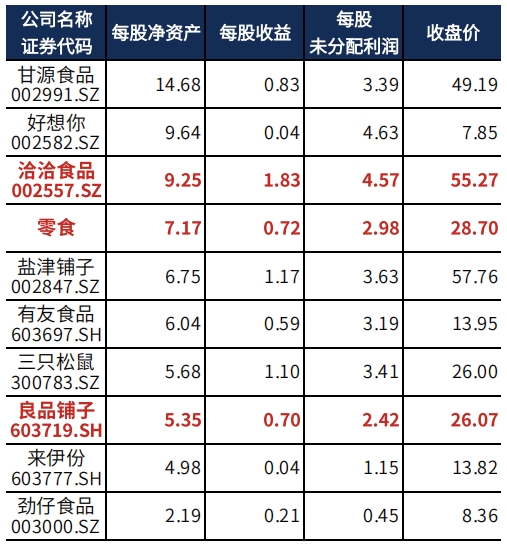 图表:零食每股指标排名(已披露2021年报企业)