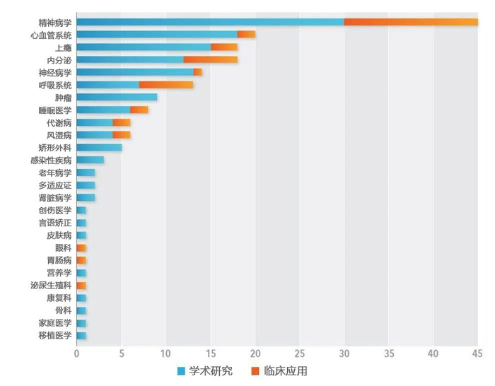 (图2:过去10年数字疗法研究和应用的领域分布[1])