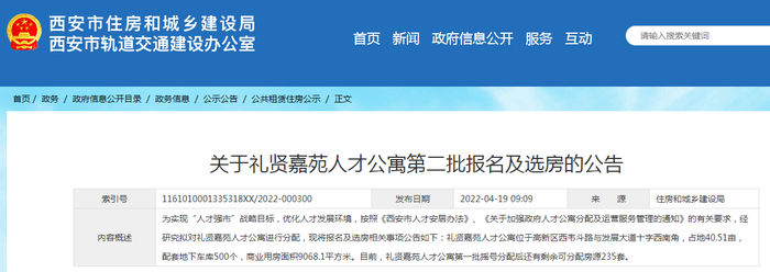 西安市公布礼贤嘉苑人才公寓第二批报名及选房相关事项