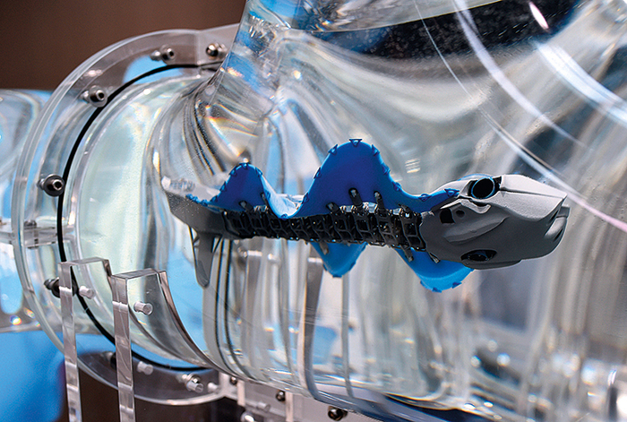 2019年汉诺威工业博览会费斯托公司展区展出的仿生水下机器人(2019年3月31日摄) 新华社/路透