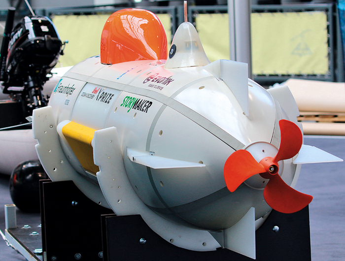 德国汉诺威IT展弗劳恩霍夫协会展台展出的无人潜艇(2018年6月11日摄) 新华社/欧新