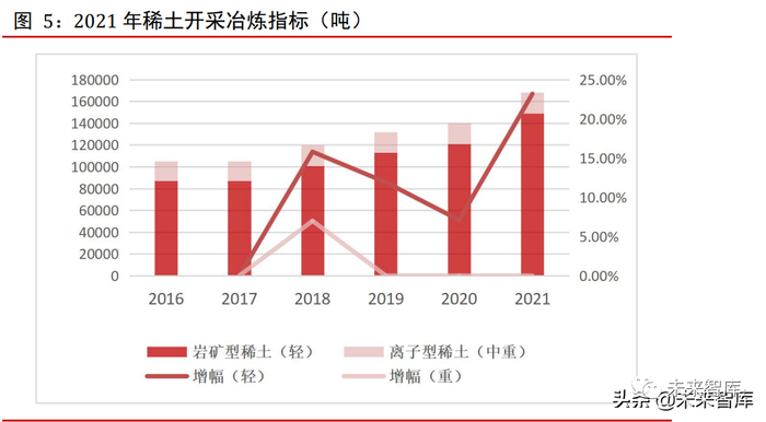 2021 年 12 月 21 日,工信部、科技部、自然资源部联合印发《关于印发“十四五”原材料工业发展规划的通知》。《通知》强调推进高洁净度高均质化冶金、高性能合金短流程制备、高性能稀土永磁材料选区精准渗透等技术。突破高性能稀土磁性、催化、光功能、储氢等关键材料。做强做大稀土企业集团,鼓励稀有金属企业加快整合,加强稀土产业上下游衔接联动。