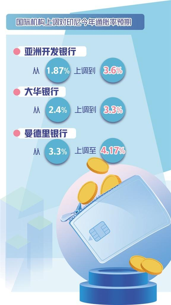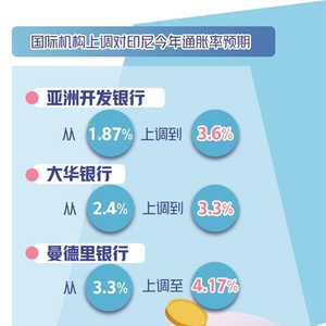 一些国际机构调高了对印尼通胀率的预测。亚洲开发银行预计,印尼今年的通胀率将达3.6%,较去年预测的1.87%大幅上升。大华银行将对印尼今年的通胀预期由2.4%调至3.3%,曼德里银行则由3.3%调至4.17%。最新报道称,4月份以来,印尼通胀率仍在攀升。