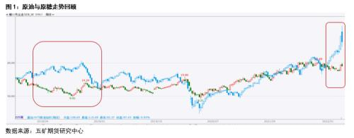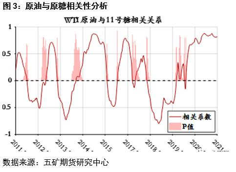 从计量分析角度来看,我们针对2011年以来原油与原糖展开相关性分析,结果表明二者并未呈现明显相关性。但疫情以来货币超发引发大宗商品普涨,商品之间相关性均大幅提升,原油与原糖、原油与铜、原油与美股等相关性均达80%以上,各个商品间之所以呈如此高的相关性,我们认为此阶段宏观因素对商品市场定价起主导作用,基本面因素其次。