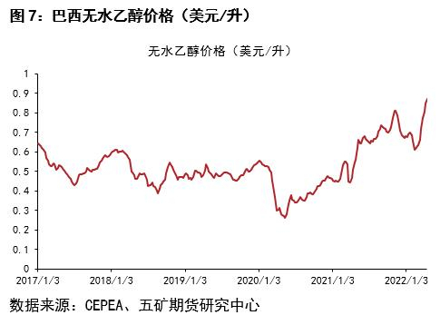 近期我们主要需关注巴西醇油比价问题,3月11日,巴西精炼厂汽油价格上涨了18.7%,达到3.86雷亚尔/升,国内价格和国际平价缩小至不到5%。目前来看,随着乙醇价格不断上行,醇油比价正处65%-70%转换区,此区间乙醇生产已占优,但优势并不明显,企业转换意愿不强;后续若乙醇价格延续涨势,醇油比值或将低于65%水平,将显著促进乙醇消费。