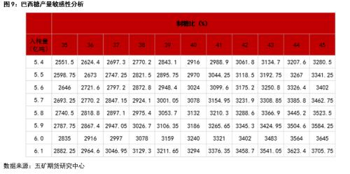 从甘蔗生产流程来看,甘蔗压榨之后若直接提取蔗汁可用来生产食糖;对蔗汁再次发酵、蒸馏、脱水可得到酒精,因此甘蔗即可用来生产食糖也可用来生产乙醇。通常,1吨甘蔗能够生产出90公升含水乙醇或85公升无水乙醇或120公斤糖以及副产品糖蜜发酵生成10公升乙醇。若以含糖量(TRS)计算,生产出1公升无水乙醇和含水乙醇分别需要1.765公斤和1.6913公斤TRS。主产国中巴西会根据二者比价关系来决定具体生产情况,其生产决策情况将通过制糖比展现,糖厂根据二者比价来决定生产利益最大化选择。假定原糖及乙醇需求平稳,糖厂一般会根据实时乙醇折糖价来对生产情况进行调整,通常制糖比变动一个百分点,巴西糖产量预期下降80万吨,对国际糖市供需有较大影响。