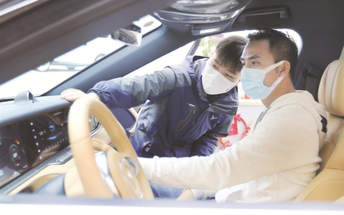 首次预约试驾后,用户当场下定。刘永亮带着郑伟鑫完成还不熟悉后续流程,几次成功体验后,郑伟鑫开始自如应对所有流程。