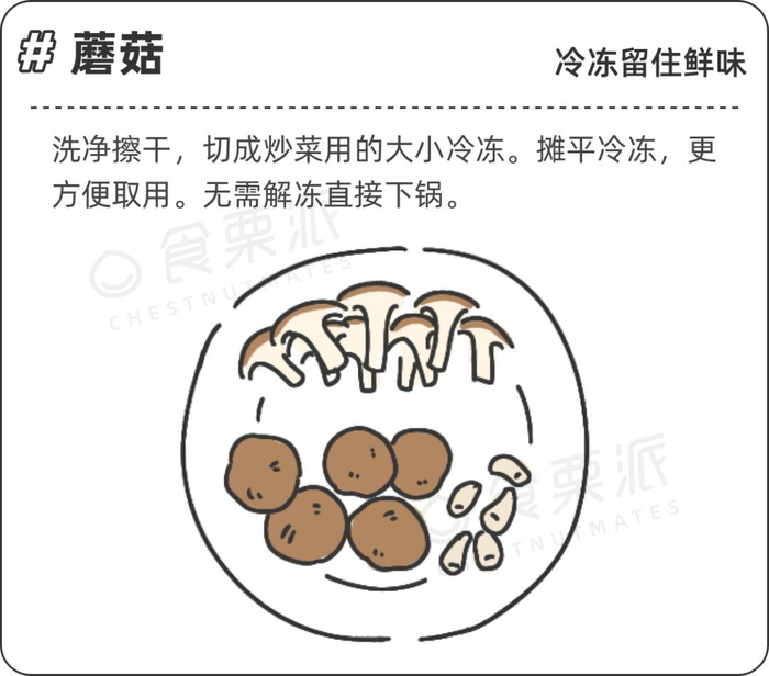 “不要沾水”这一点适用于大部分蔬菜,而鲜菌菇更是如此,沾水后容易发黄、发黑、腐烂。