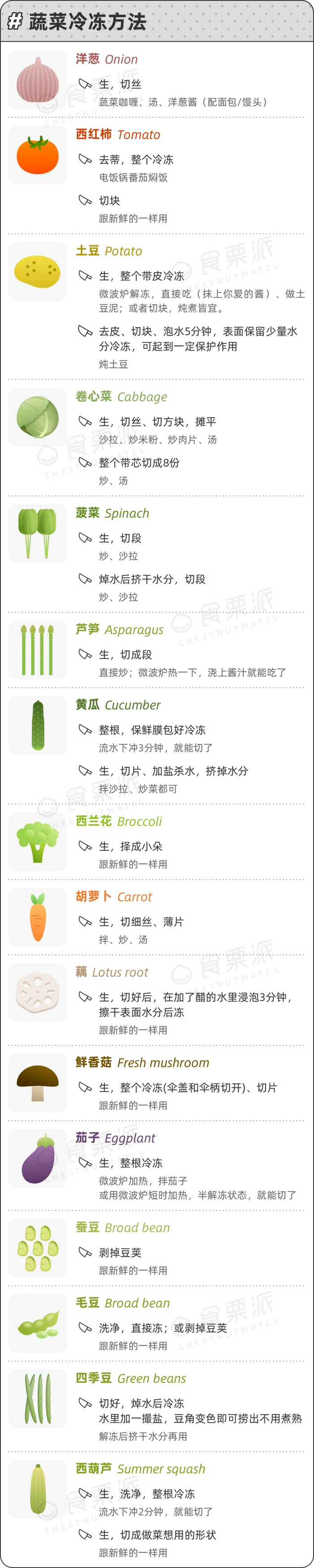 我们整理了常见蔬果的冷冻处理方式,供大家参考。