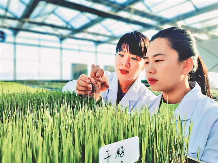 黑龙江省农垦科学院水稻研究所的专家们在徐一戎水稻科技园区工作。 王亚光摄