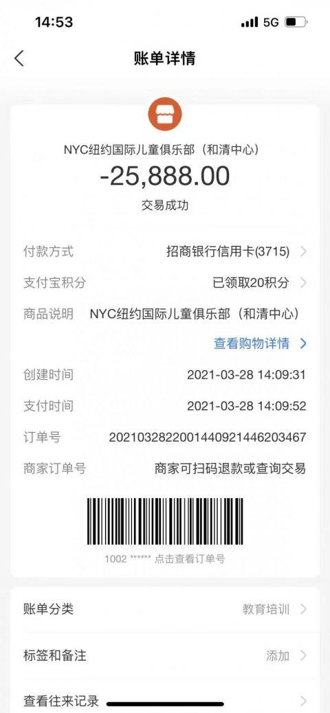 在由陈女士建立的一份文档中显示,截止4月17日晚,家长自发填写信息208人,合计金额253万元。陈女士表示,仅纽约国际早教和谐店就有1200余名学员,仅该店预计涉案金额高达千万元,全北京涉案金额总额或高达上亿元。